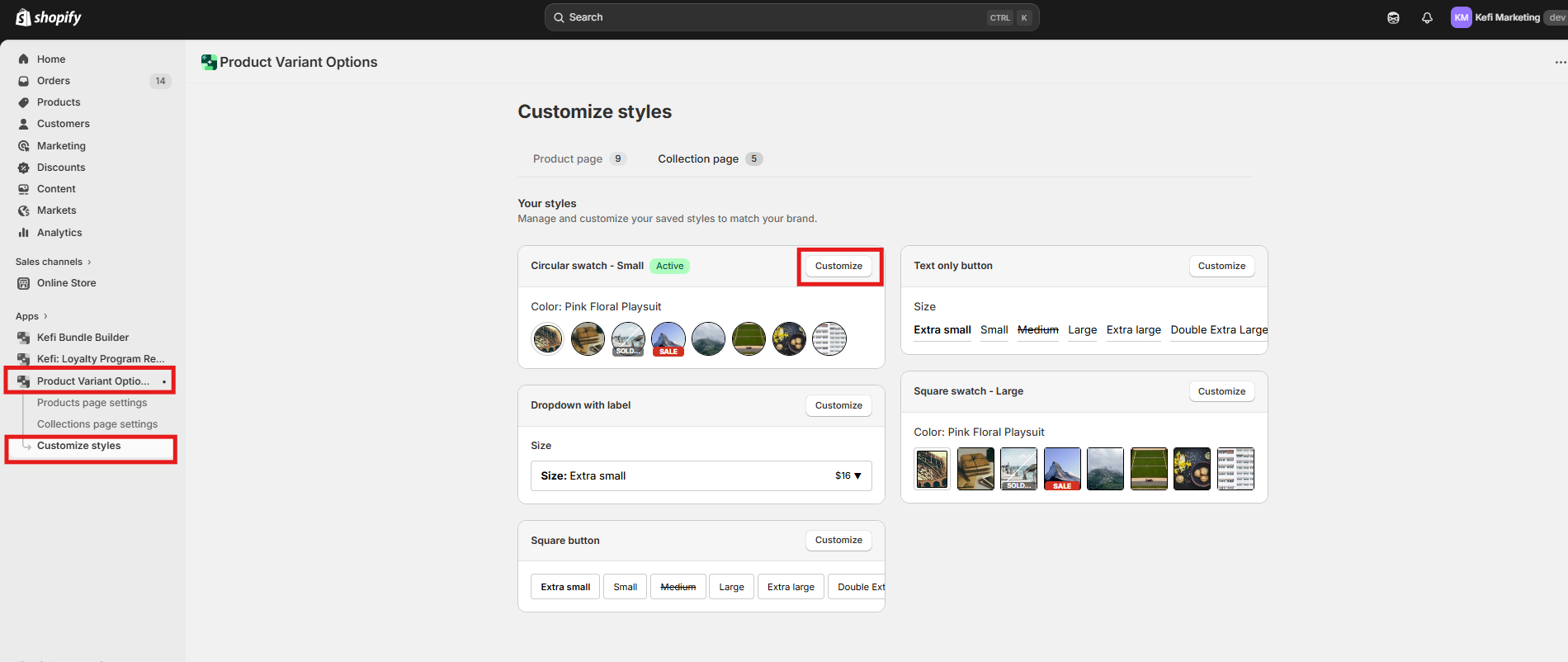 Click Customize next to the style you are using (e.g., Circular Swatch).