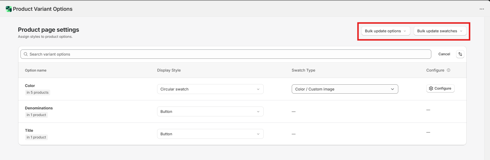 Bulk Update Options: Use a CSV file to map styles (e.g., "All options named 'Size' should be 'Button Pills'") across your entire store.
