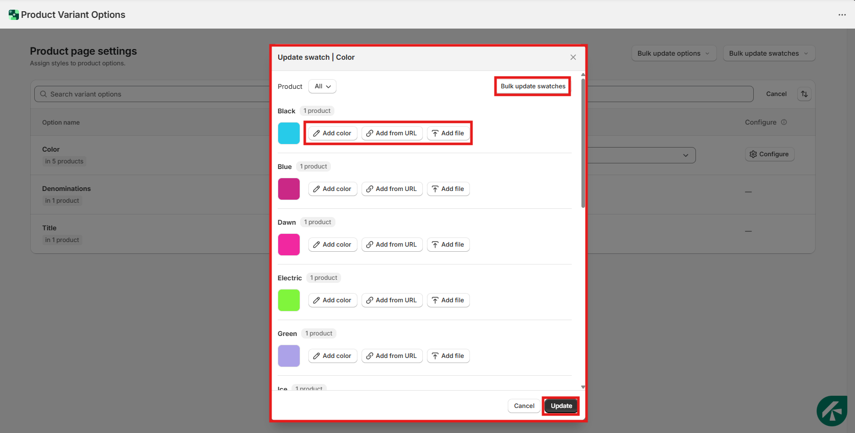 Note: Ensure your variant images are centered, as the app pulls from the middle of the photo to create the swatch.